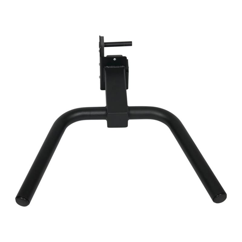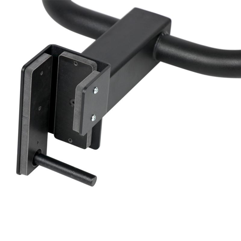 Easy to adjust and store. The formed design makes the bar comfortable for athletes and trainees of all sizes. Handles are 23" apart at its widest point.