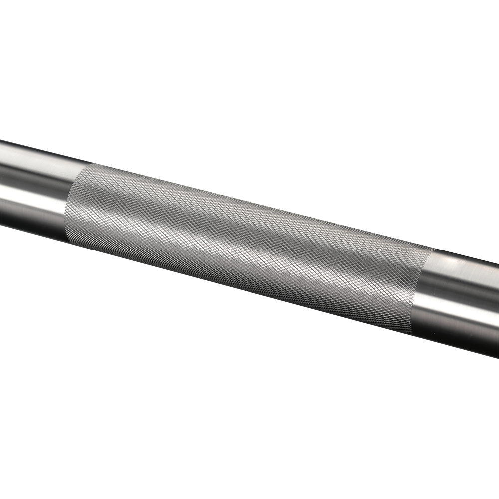 The bar shaft is made from precision straightened stainless steel. The strength of the shaft is tested with every shipment of raw material to ensure we have a consistent 190,000 PSI tensile strength. This attention to detail also allows for an excellent whip and long-term performance of our bars. Stainless Steel offers superior corrosion resistance and can always be cleaned and repaired with no damage to the surface. Additionally, knurling set in stainless steel has a one-of-a-kind feeling that cannot be achieved with other finishes.