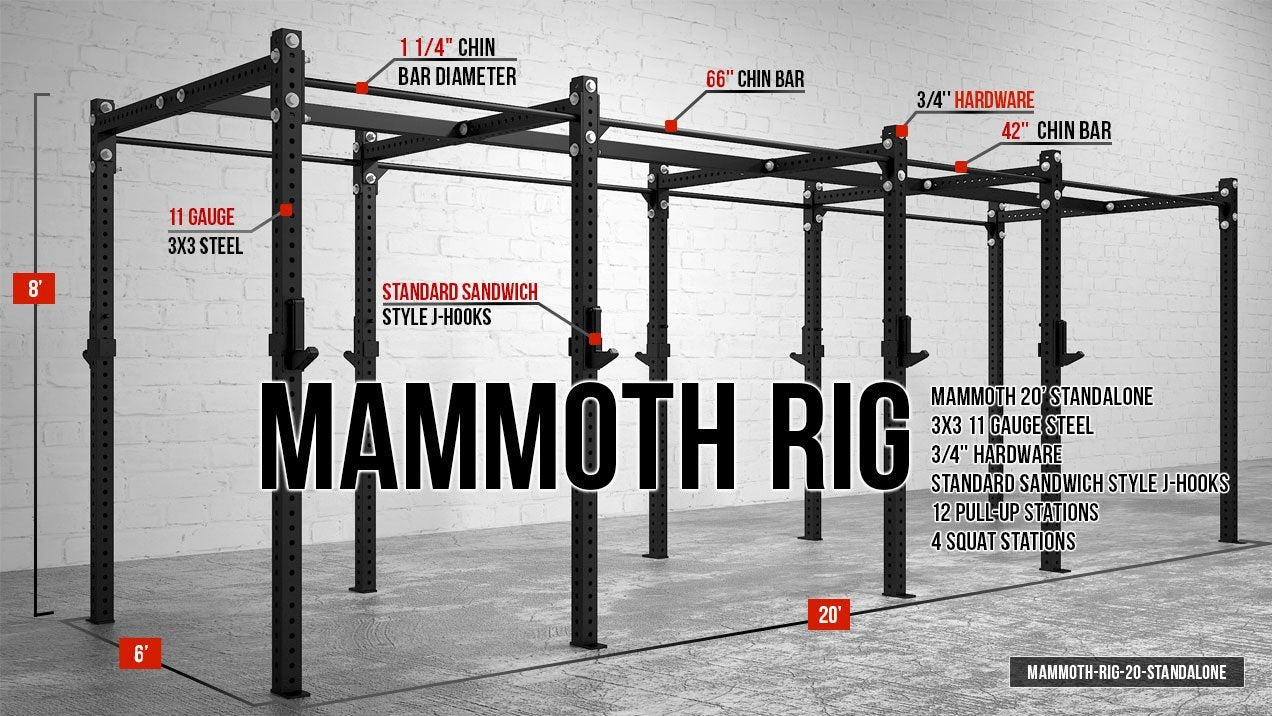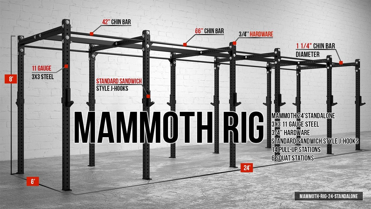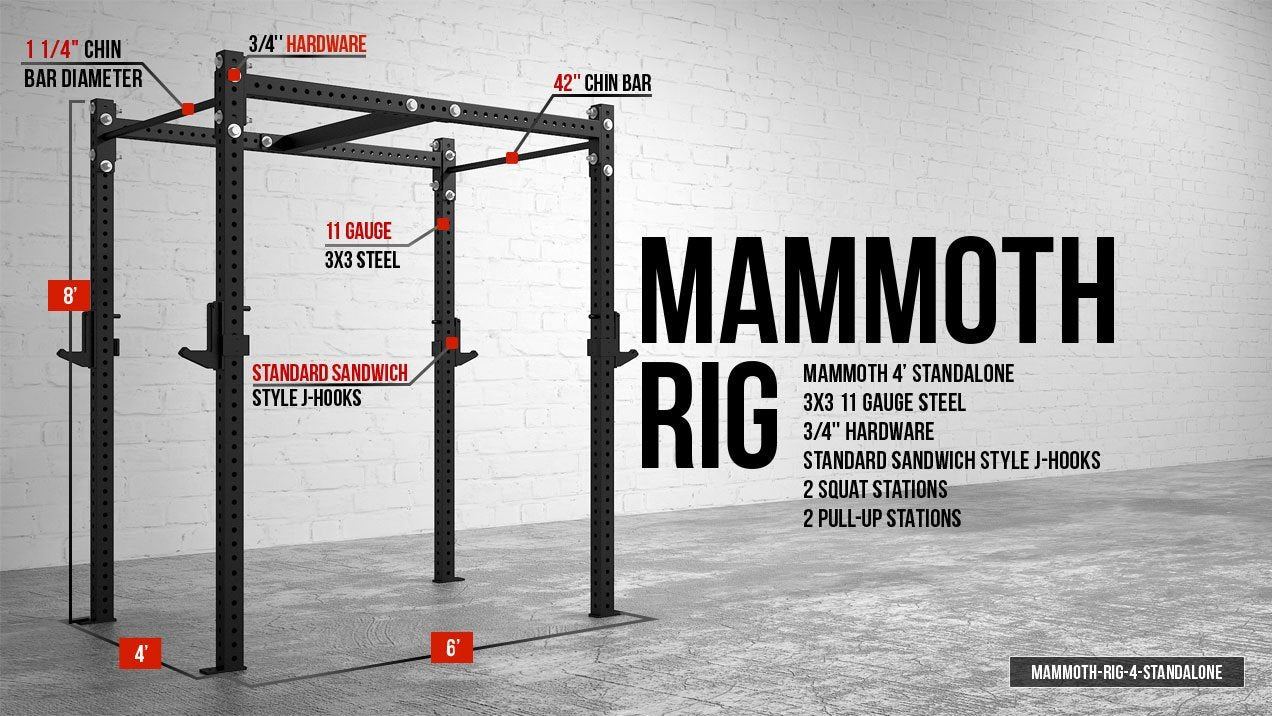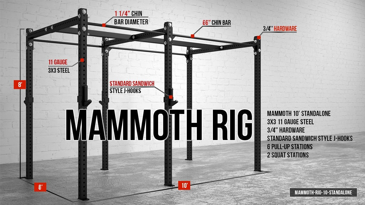 3x3 11 gauge steel and 3/4" hardware makes this an incredibly solid Rig with modular functionality and a wide variety of customization options.  Plastic protection on both sides of the J-Hooks helps protect the bar and uprights from scratching and wear.  This Rig is a worthy addition to any training center and is built to withstand heavy use on a day-to-day basis.