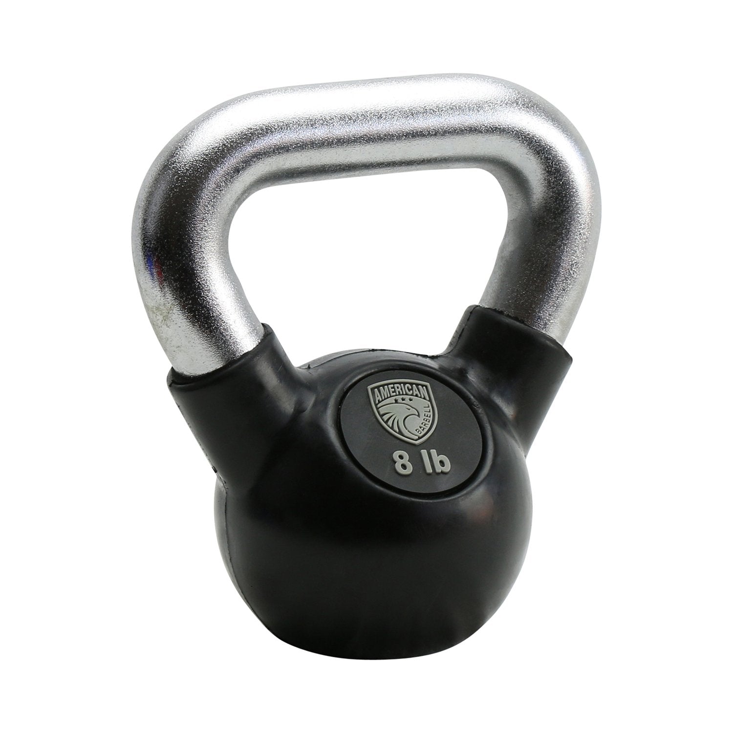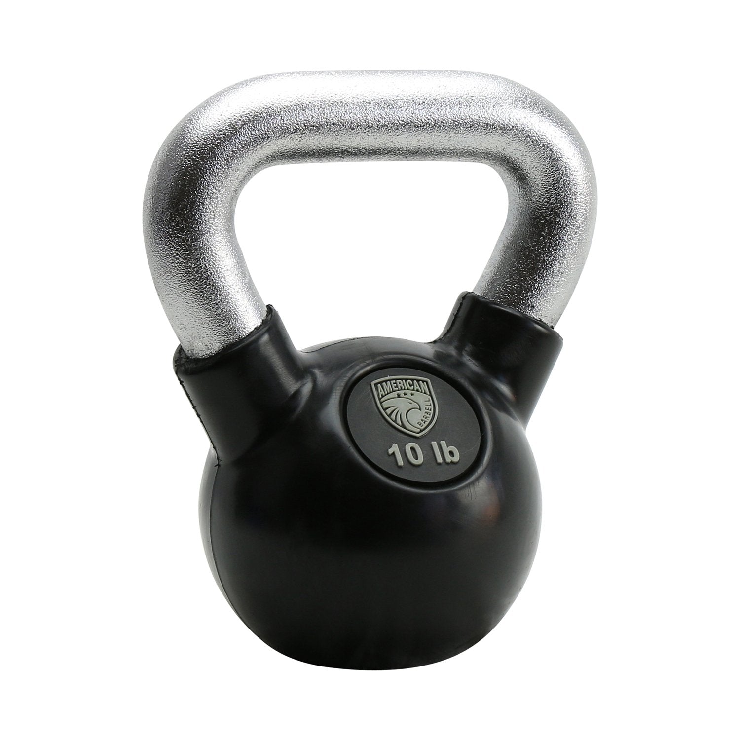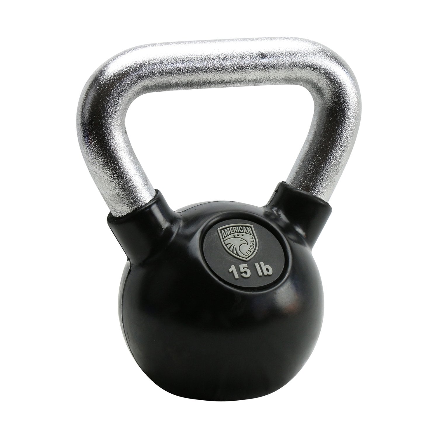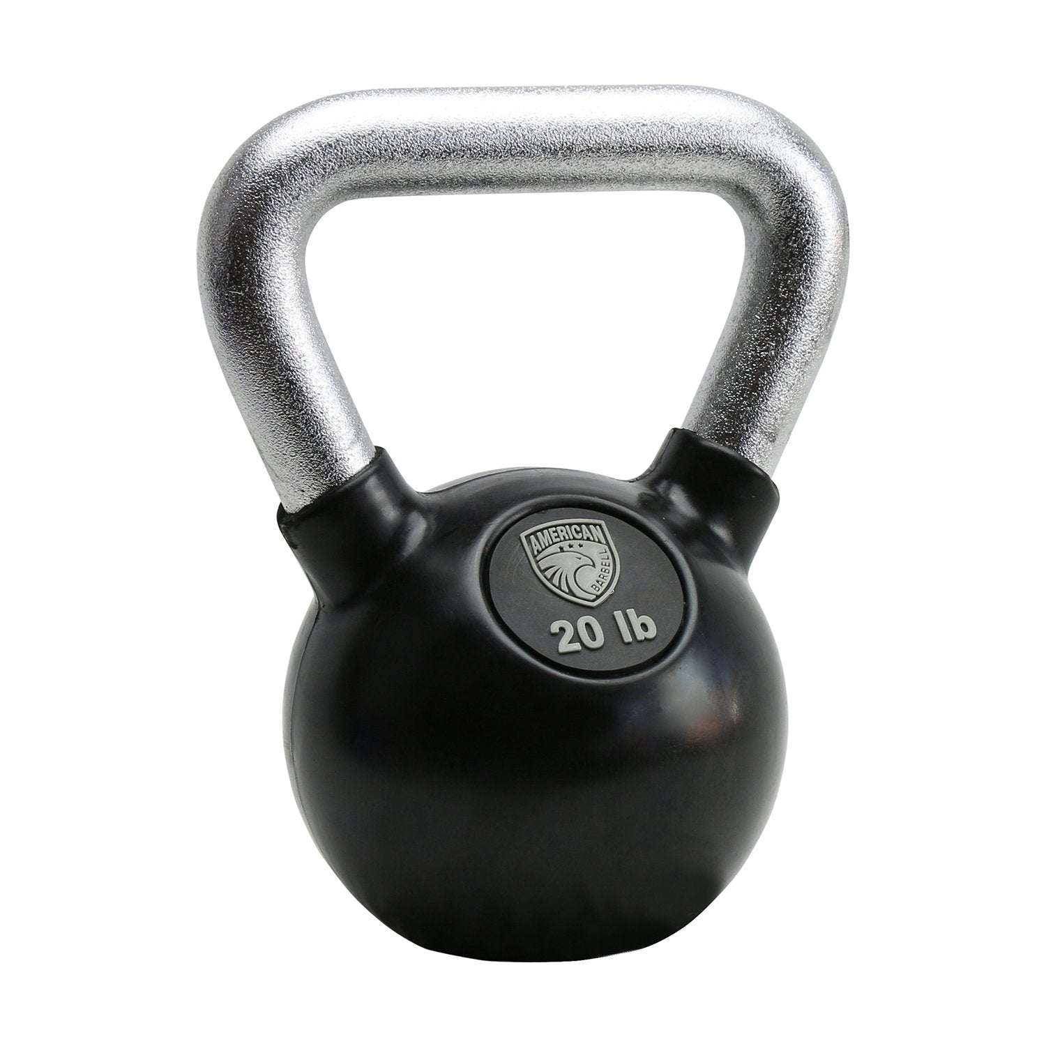 The American Barbell rubber coated cast iron kettlebell is well balanced with a smooth chrome handle and ergonomic grip. Its rubber coating helps prevent chipping and damage, making these a solid choice for any training environment. Available from 5-80LBs.