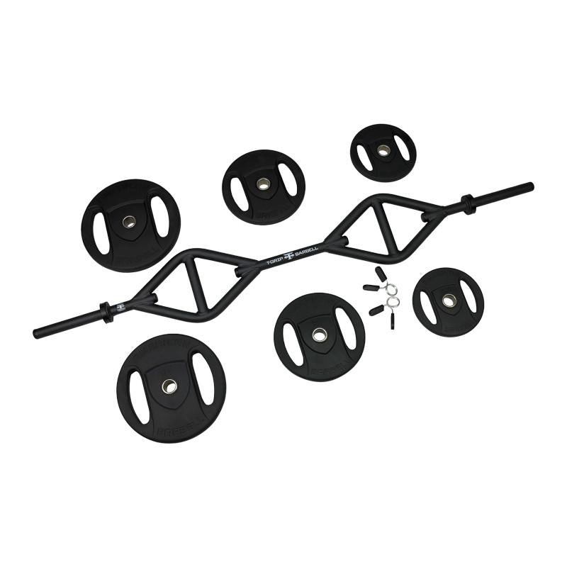 Set includes: The Patented T-Grip Lite Bar, and high-quality urethane weight plates 2x 2.5lb, 2x 5lb, 2x 10lbs and 2x Spring Collars (OBC-SP-1).